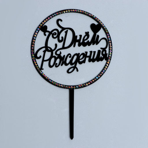• Цена за 2 шт. Топпер для торта «С днём рождения», со стразами, чёрный