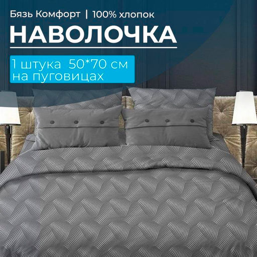 Артикул: Наволочка 50*70 см, бязь "Комфорт", на пуговицах (Иллюзия, серый)
