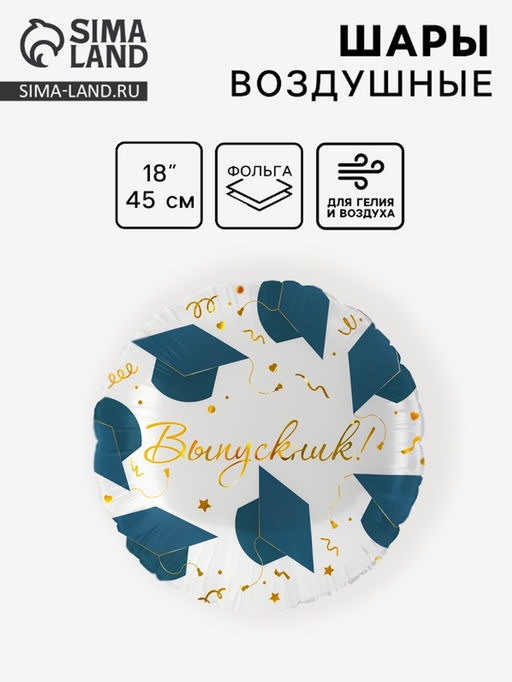 • Цена за 2 шт. Воздушный шар фольгированный на выпускной 18" «Выпускник», 1 шт.