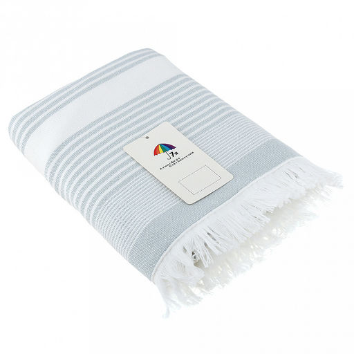 • Полотенце махровое "Полосатый рейс" 50х90см, хлопок 100%, с бахромой, голубой (Китай)