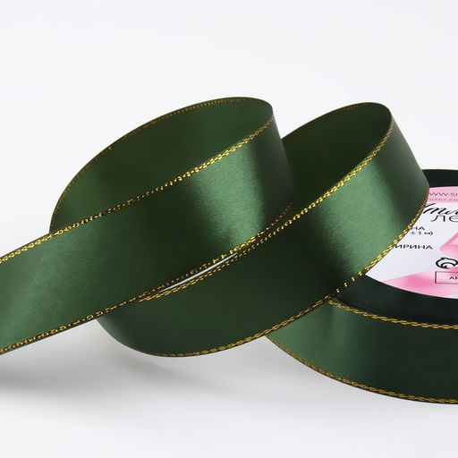 • Лента атласная, с золотым люрексом, 25 мм, 23±1 м, зелёная №049