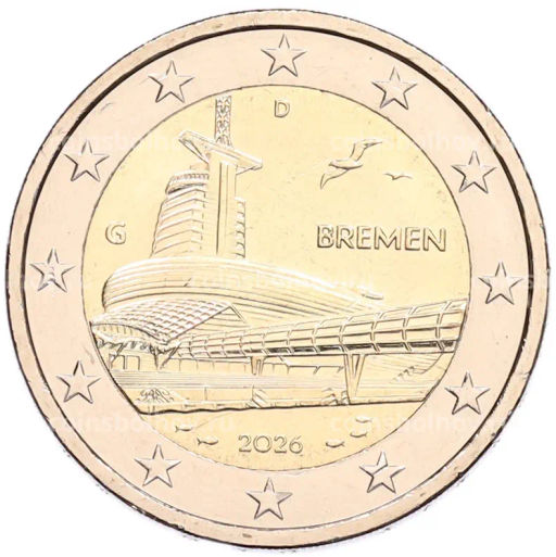 • Монета 2 евро 2026 года G Германия Федеральные земли Германии Бремен, музей климатических зон