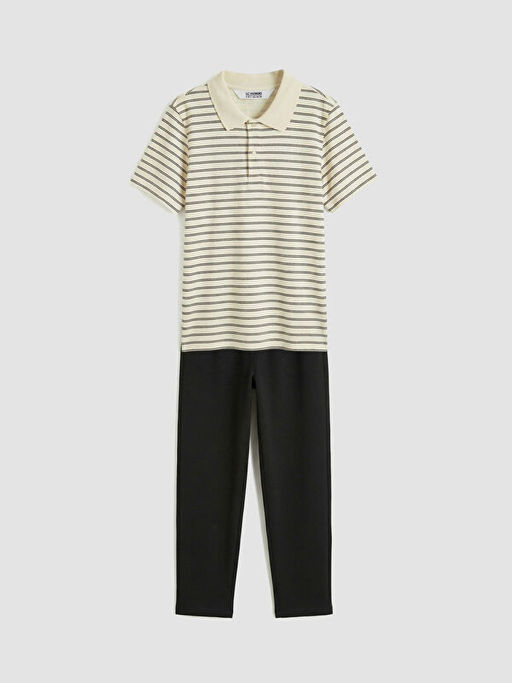 Polo Yaka ?izgili Erkek ?ocuk Ti??rt ve Pantolon