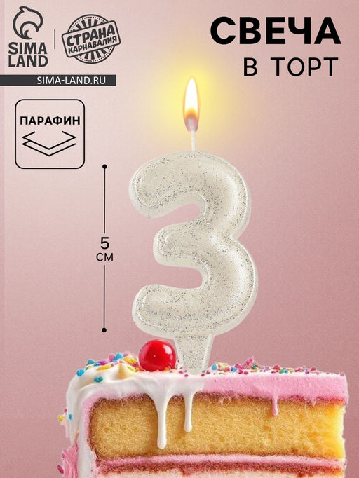 Набор: Нет. Для кого: Унисекс. В наборе, шт.: 1. Высота свечи, см: 5. Форма свечи: Цифры. Цифра: 3. Бесплатная доставка: Да. Наша разработка: Да.