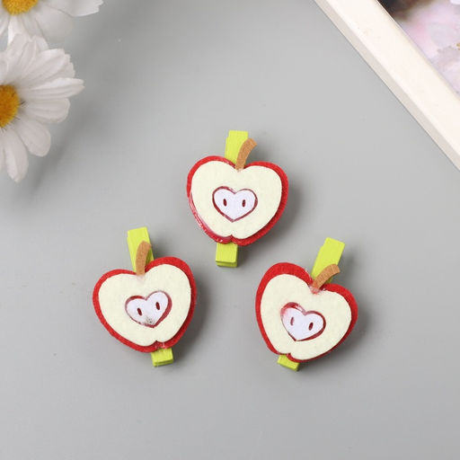 • Цена за 2 шт. Декор для творчества дерево, фетр «Прищепка. Половинка яблока», набор 3 шт., 1.3×3.5×4.8 см