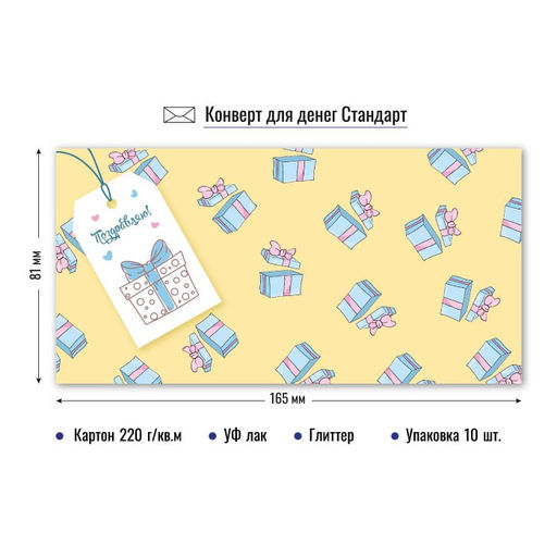 • Цена за 10 шт. Конверт для денег ЭКОНОМ "Поздравляю!" (9149)