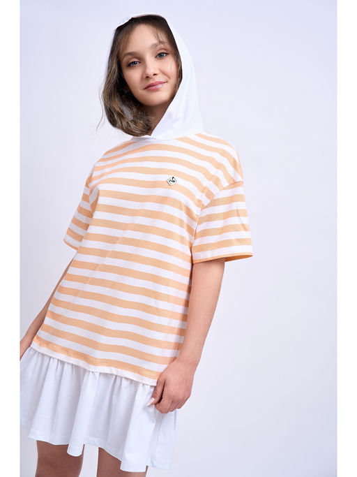 Теннисное платье оверсайз с вободного силуэта с капюшоном . Длина выше колена из 2-х полотен . Из плотного экологичного полотна премиум класса кулирной глади с лайкрой, со спущенм плечом. Стирать при температуре 40 градусов. Наши изделия не закатываются, не садяться и не линяют, будет форму держать после стирки и соответствуют ГОСТу и нормам СаНПиНа Состав:92% хлопок, 8% лайкра