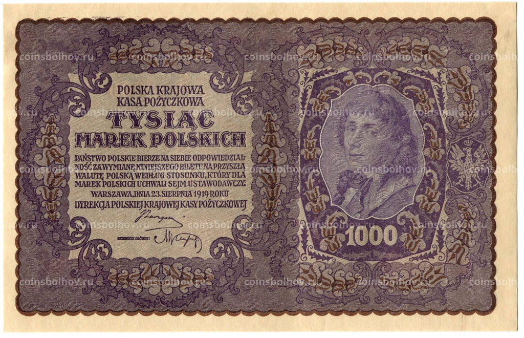 • Банкнота 1000 марок 1919 года Польша