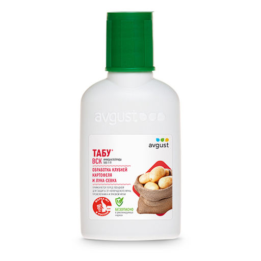 Имея в составе специальный цветовой маркер, Табу позволяет равномерно нанести раствор, контролируя объем окрашенных клубней. Табу создает на поверхности посадочного материала прочную окрашенную пленку, неосыпающуюся после высыхания. Препарат обладает высокой эффективностью независимо от погодных условий, в рекомендуемых дозах не токсичен для пчел, дождевых червей, птиц и млекопитающих. Расход Табу очень экономичен: 10 мл препарата хватает на 125 кг картофеля.
