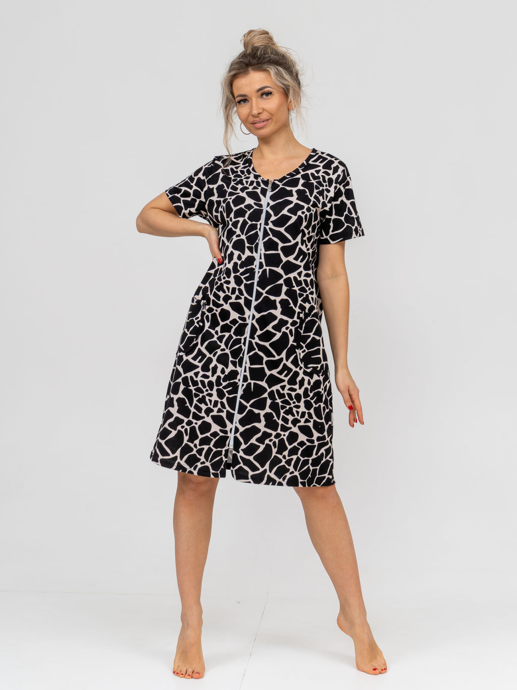 "Обратите внимание: фото изделия сделано при искусственном освещении в студии, вживую - цвета могут немного отличаться.Женский домашний халат это идеальное решение для комфорта и уверенности в себе каждый день. Этот нежный домашний комплект станет одной из самых желанных и часто используемых вещей в вашем гардеробе, настоящее must-have для любой девушки. Модель изготовлена из гипоаллергенного материала с повышенной износостойкостью, что обеспечивает сохранение первоначального вида после множества стирок. Мягкая приятная к телу ткань создает ощущение нежного объятия, даря неповторимый комфорт с момента надевания. Наш халат домашний выполнен в универсальной длине миди, которая подходит для любого типа фигуры. Уникальная конструкция рукава обеспечивает полную свободу движений, делая халат идеальным для занятий домашними делами и отдыха. Свободный прямой крой платья-халата эффективно скрывает возможные недостатки и дарит ощущение невероятной легкости во время отдыха. Элегантный дизайн делает эту модель не просто домашней одеждой, но и стильным элементом образа для утра за чашкой кофе или вечернего отдыха. Стильная круглая горловина и практичные накладные карманы делают модель не только удобной, но и элегантной. Застежка на молнии обеспечивает комфортное надевание и снятие. Превосходное качество ткани гарантирует, что этот халат женский домашний будет радовать вас долгое время. Подарите себе ощущение уюта с нашим халатом длины миди лучшее решение для расслабления после тяжелого дня.