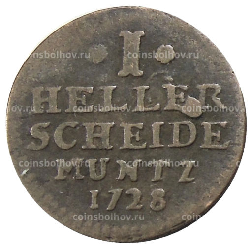 Монета 1 геллер 1728 года Германсике государства Гессен Кассель