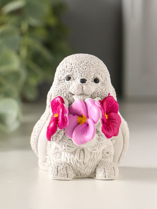 Фигурка гипс Кролик с анютиными глазками, 6?6?4, цветной