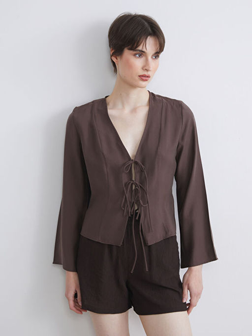 V Yaka Modal Kar???ml? Ba?lamal? Bluz