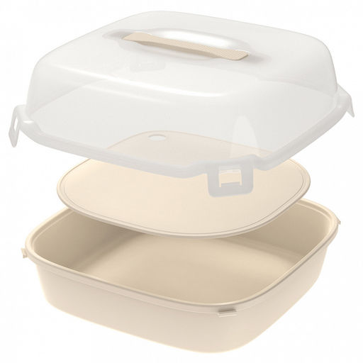 • Контейнер для хранения выпечки пластмассовый 30х30?х14см, подложка, крышка с ручкой, защелки, полипропилен, слоновая кость (Россия)