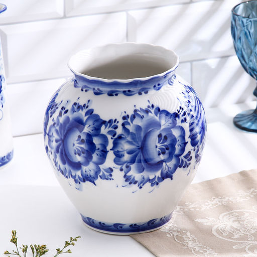 Ваза для цветов «Сирень», h=26 см, фарфор гжель, авт. Киселев А.