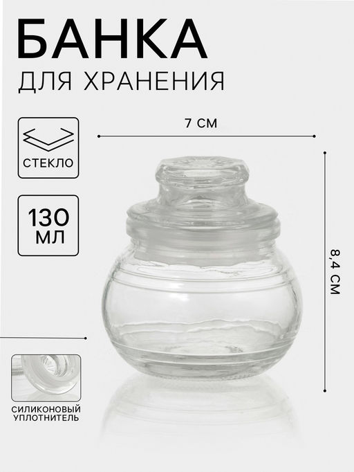 Банка для сыпучих «Бочка», 130 мл, 7×8.4 см, стекло, прозрачная