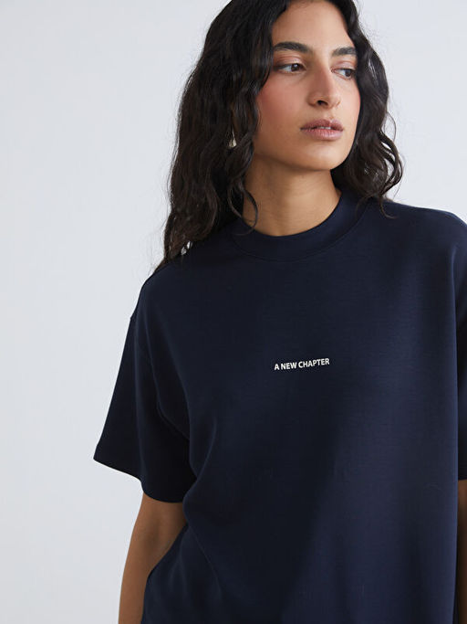 Bisiklet Yaka Bask?l? Kad?n Ti??rt