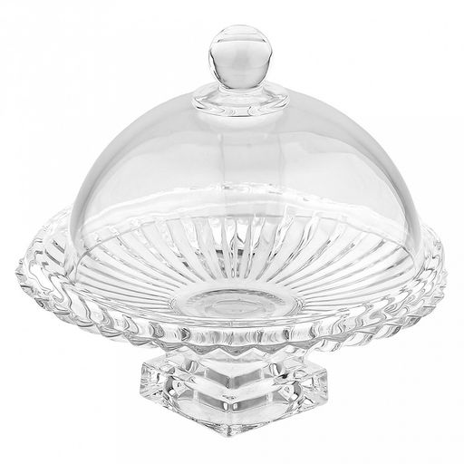 • Блюдо стеклянное "Пралине" д19см, h7,4см, основание 6,2х6,2см, на ножке, с крышкой (клош) д16см, общая h17,6см, под хрусталь, в коробке (Китай)