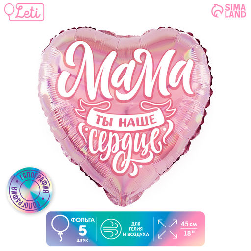 • Воздушные шары фольгированные 18" «Мама», сердце, 5 шт.
