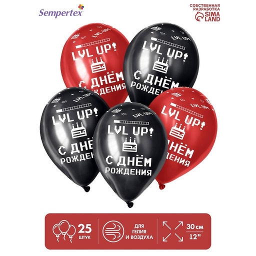 Воздушные шары латексные 12" «С Днём рождения Геймеру», 25 шт.