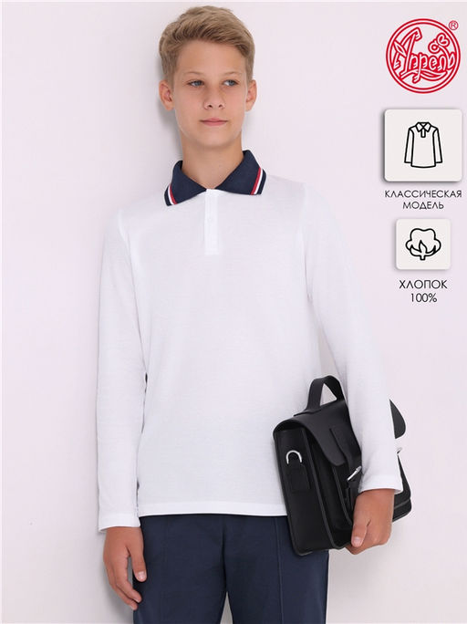 поло,хлопок 100%,пике / хлопок 100%,белый+темно-синий77+белый+красный / - / - / - / - / -,Поло для мальчика выполнено из хлопкового полотна. Изделие с длинными рукавами и с застежкой на кнопки. Отличный вариант для школы! Уход: только машинная стирка (руками не стирать!) при температуре 40 градусов, без предварительного замачивания.