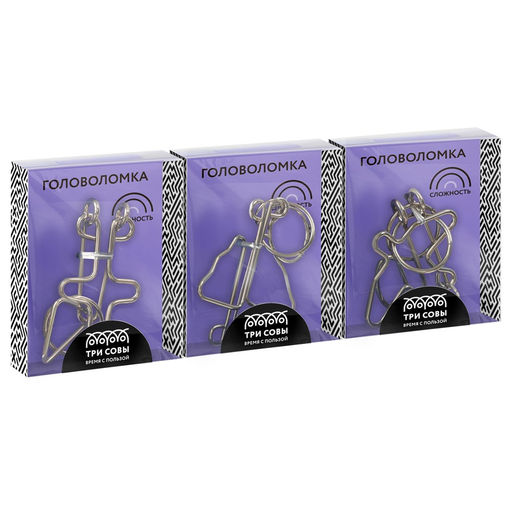 Головоломка металл. ТРИ СОВЫ средняя, ассорти, 2 уровень сложности (PMb_16934)