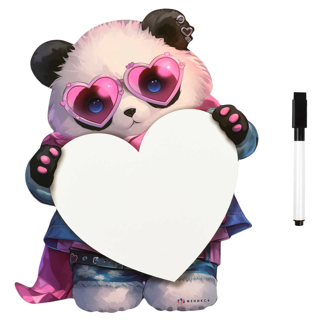 Магнитная доска c полем для рисования и письма арт. 73035/ 50 ПАНДА В ОЧКАХ ( 20х25 см, мелованная бумага, ферроагломерированный полимер, 1 маркер в наборе, фигурная вырубка, полноцветная печать)
