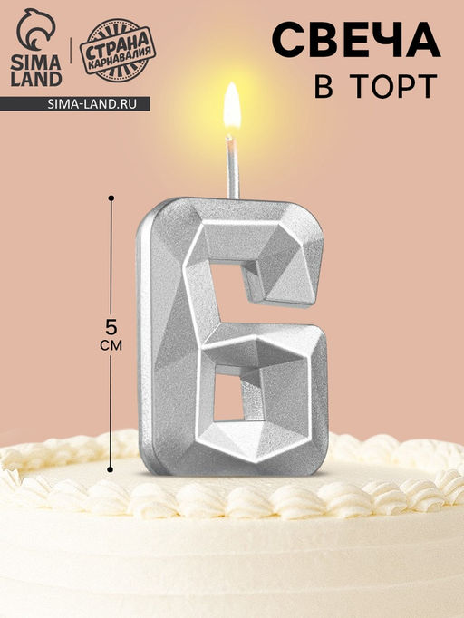 • Цена за 3 шт. Свеча в торт на шпажке «Алмаз», цифра 6, серебряная, 5×2.6 см