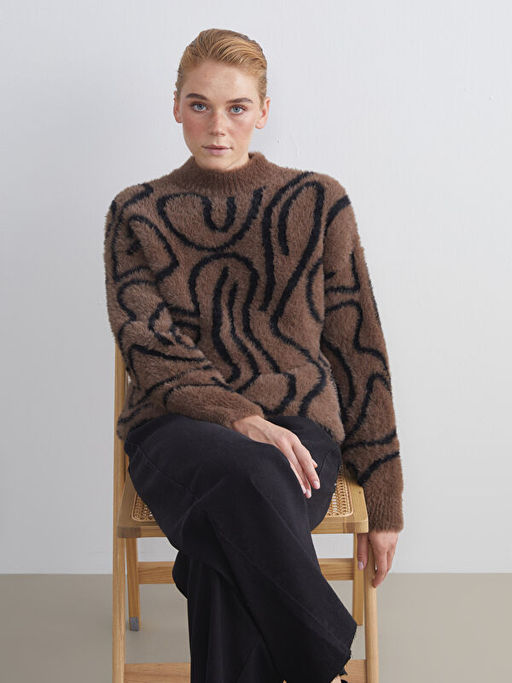 Bisiklet Yaka Desenli Kad?n Pel?? Triko Tunik