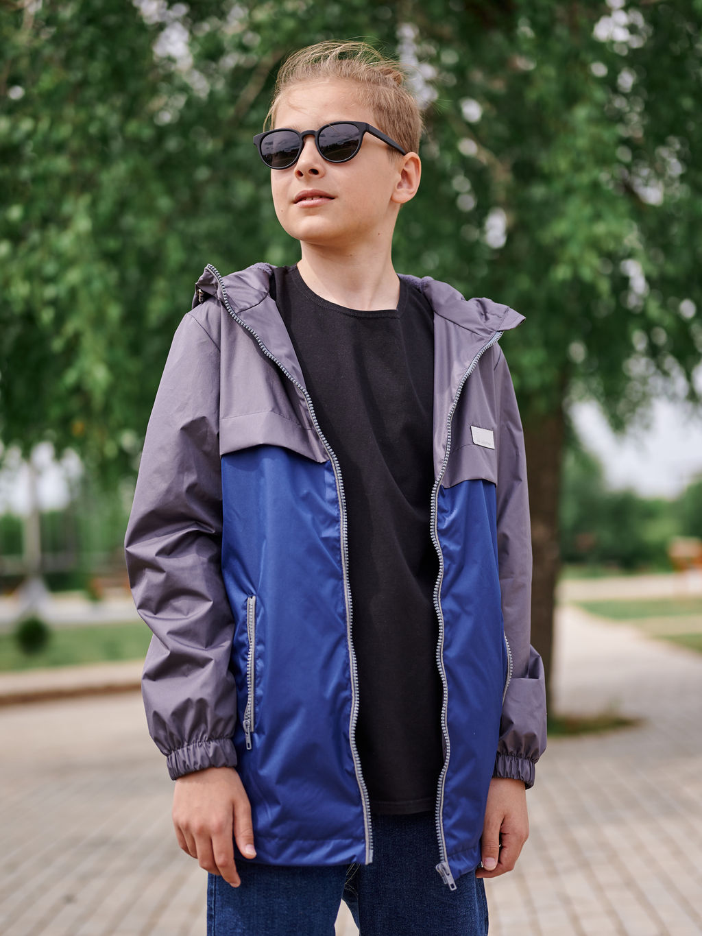 • Ветровка-спорт на флисе для мальчика серый-синий