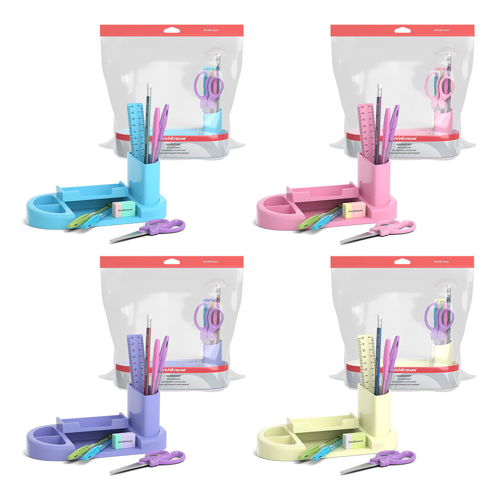 АКЦИЯ Цена за 4 шт. Набор настольный пластиковый ErichKrause® Harmony, Pastel, ассорти из 4 цветов