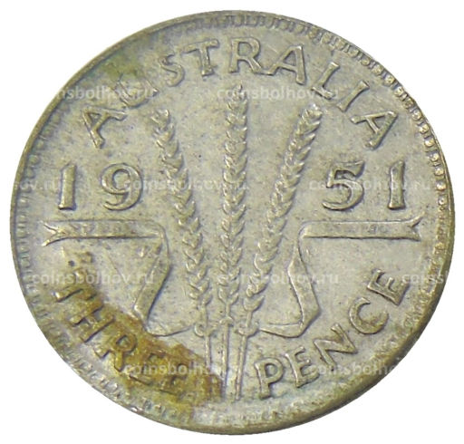 Монета 3 пенса 1951 года Австралия