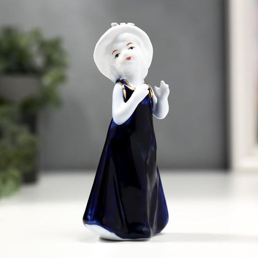 Фигурка керамика под фарфор «Малышка в шляпе», белый с сине-золотым, 12×6 см