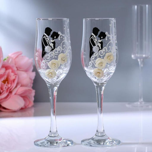 Свадебные бокалы — неотъемлемый атрибут любого торжества.Существует давняя традиция — бить фужеры на счастье после регистрации брака. Считается, что звон разбивающегося стекла и его осколки создают защиту от злых духов для новой семьи. Если вы планируете придерживаться такой традиции, рекомендуем вам приобрести две пары фужеров, одни — для битья, вторые — на стол молодожёнов.Даже если вы не приверженец традиций, нарядные фужеры вам тоже пригодятся. Они станут эффектной деталью сервировки и будут стильно выглядеть на фото и видео.Отнеситесь к выбору такого атрибута с любовью, и тогда он будет заряжать вашу семью положительной энергией всю жизнь! Набор: Да. В наборе, шт.: 2. Объём, мл: 200. Рисунок: Да. Назначение: Для шампанского. Можно мыть в посудомоечной машине: Нет. Текстура: Гладкая. Особенности: Со свадебным декором.