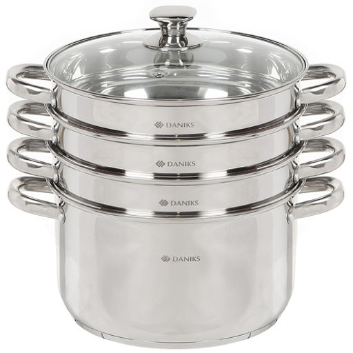 Четырехъярусная мантоварка изготовлена из нержавеющей стали с зеркальной полировкой. Изделие состоит из основной емкости-кастрюли, трех секций с отверстиями, и крышки. Специальный многоуровневый дизайн позволяет готовить до четырех различных блюд одновременно. Идеально подходит для национальных блюд как манты, котлеты, овощи, пельмени на пару и многое другое. Блюда, приготовленные на пару, являются самыми здоровыми и полезными, так как при их приготовлении не используется масло и жир. Они сохраняют все питательные вещества и витамины.