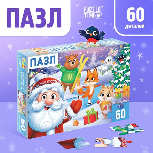 Пазл «Новогодняя компания» — то, что нужно для полезного и интересного досуга! Такой подарок поможет ребёнку скрасить ожидание Нового года, а также потренировать мелкую моторику, внимательность, логическое мышление и память.Особенности пазлаРебёнок соберёт все 60 деталей в одно целое и получит красочную картинку размером 33 × 23,7 см.Детали большого размера удобно держать маленькими ручками.Размер одной детали: 4 × 3,3 см.Пазлы поставляются в праздничной коробке размером 18 × 3,5 × 12,7 см.Польза собирания пазлов для детей:развивает логическое мышление и кратковременную память;тренирует усидчивость и мелкую моторику рук;учит различать цвета и находить связь между частью и целым.Как сохранить собранный пазлНанесите клей для пазлов на лицевую сторону получившейся картинки, равномерно распределите его по поверхности.Клей высыхает в течение 1,5−2 часов. После высыхания клей абсолютно прозрачен и не оставляет разводов.Вставьте получившуюся картинку в раму и украсьте интерьер.Игра с пазлами рекомендована детям старше 3 лет. Для кого: Унисекс. Возраст: От 3 лет. Ширина собранного пазла, см: 23. Длина собранного пазла, см: 33. Количество элементов: 60. Тематика: Новогодняя. Тематика: Детская. Тематика праздника: Новый год. Тип пазлов: Классические. Форма: Прямоугольник. Особенности: Без особенностей. Наша разработка: Да.