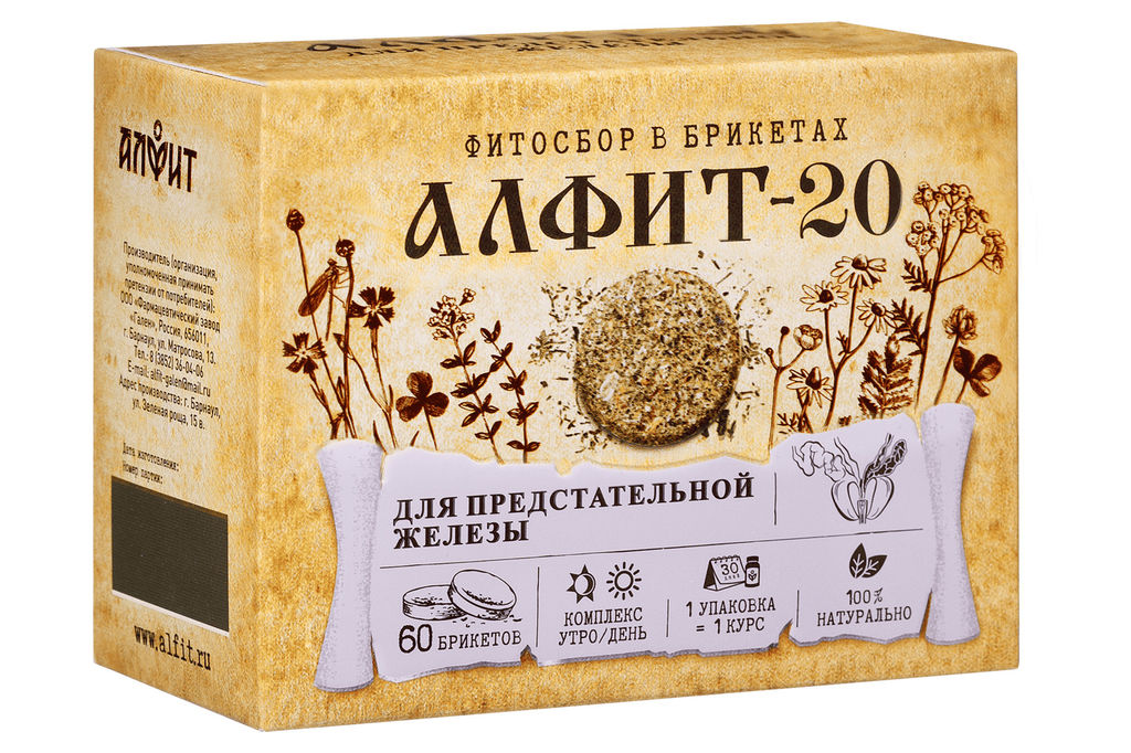 2 брикета (1 брикет утром (Алфит-20 утренний), 1 брикет днем (Алфит-20 дневной)). Комплект рассчитан на 1 месяц приема.