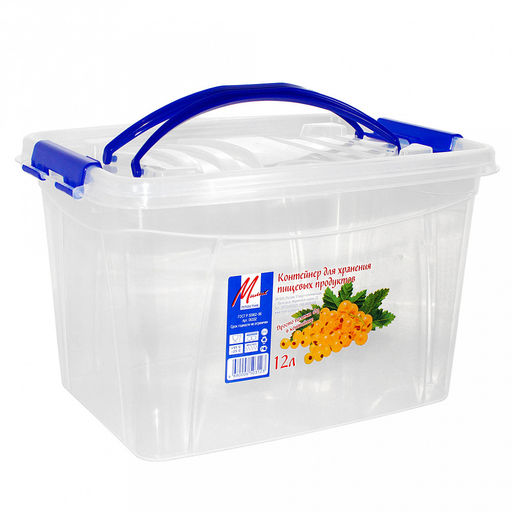 Контейнер для хранения продуктов пластмассовый 12л, 34х24х21см, с ручкой, 2 защелки, прозрачный (Россия)