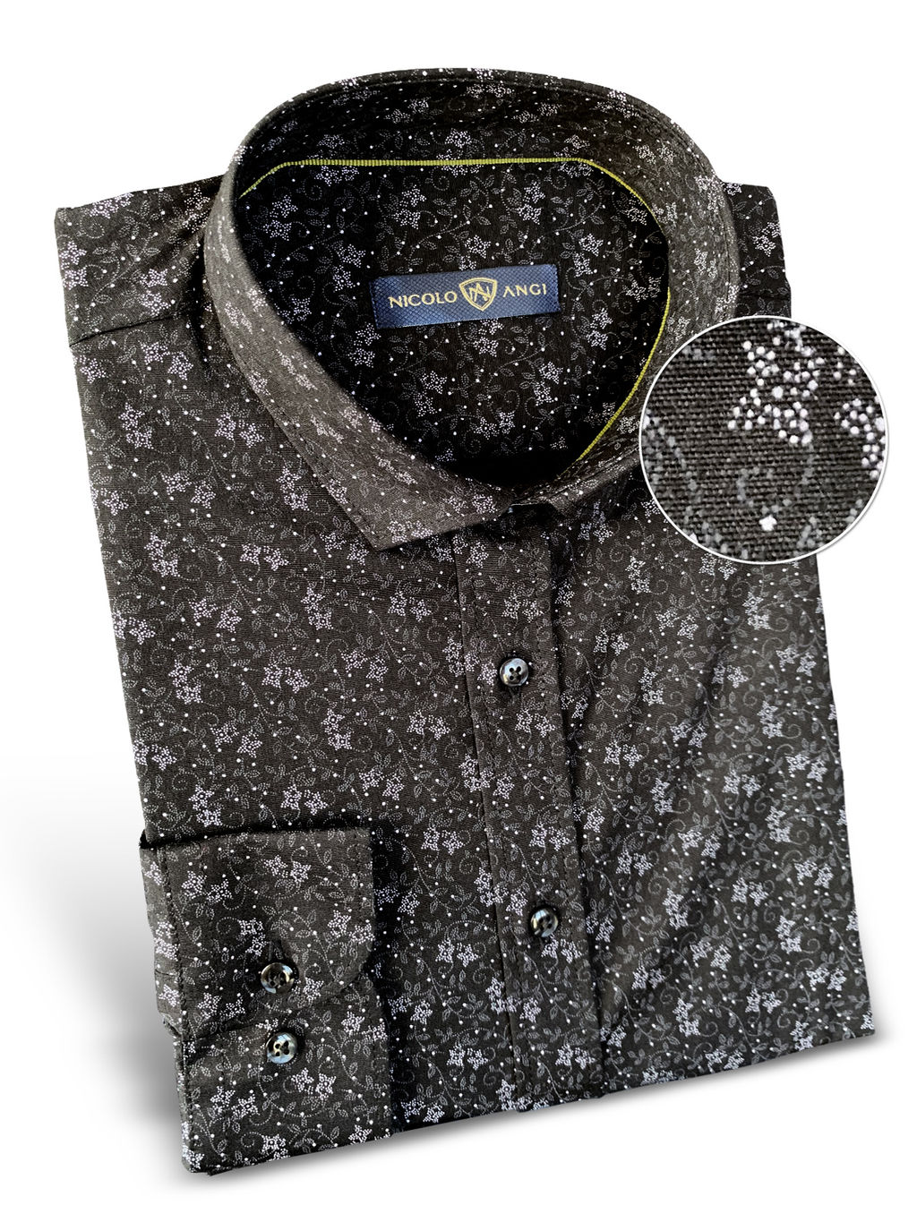 Бренд: Nicolo Angi Длина рукава рубашки: Длинный Карман: Без кармана Силуэт: Полуприталенный силуэт (regular fit) Состав: 97% хлопок, 3% лайкра Стиль: Кэжуал Узор (рисунок): Мелкие цветочки Цвет: Черный