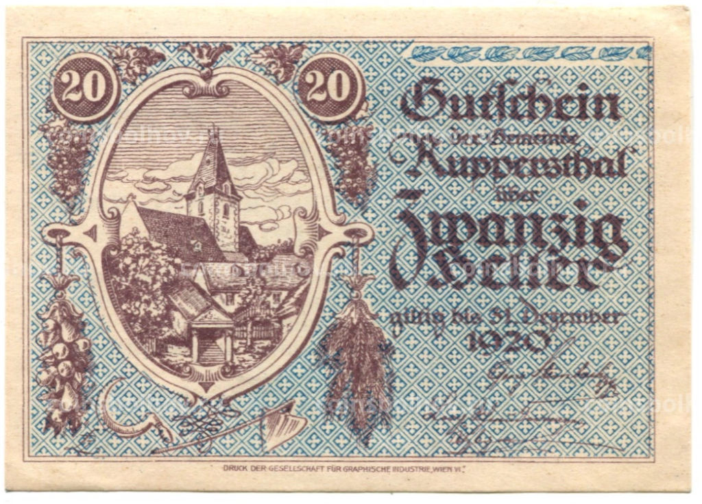 Банкнота 20 геллеров 1920 года Австрия Руппершталь(нотгельд)