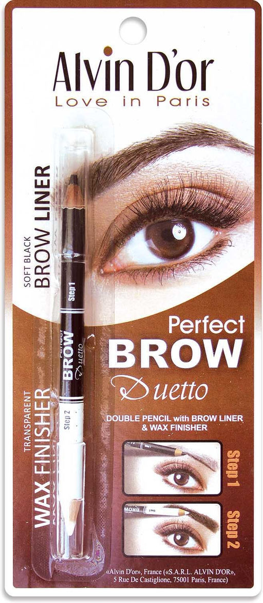 • Alvin Dor P1-4 Дуэт для бровей двойной карандаш+Воск Brow Perfect (тон 01 Soft Black)