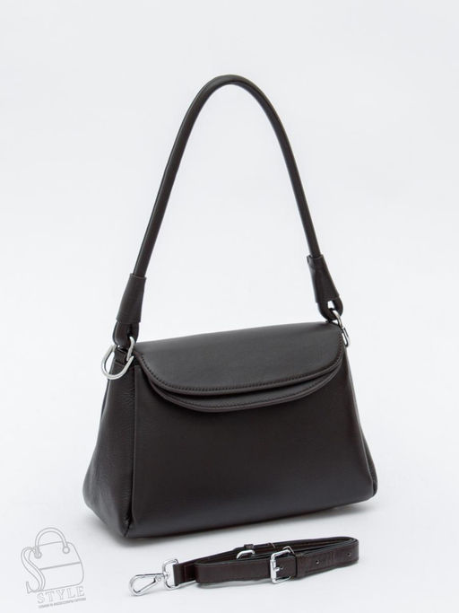 Базовая модель, выполнена из кожи. Дополнена серебристой фурнитурой. Данная модель закрывается на клапан, носится в руке за съемную ручку. Или на плече, в комплекте имеется ремень с регулировкой длины. Каркас полужесткий. На дне предусмотрены ножки.