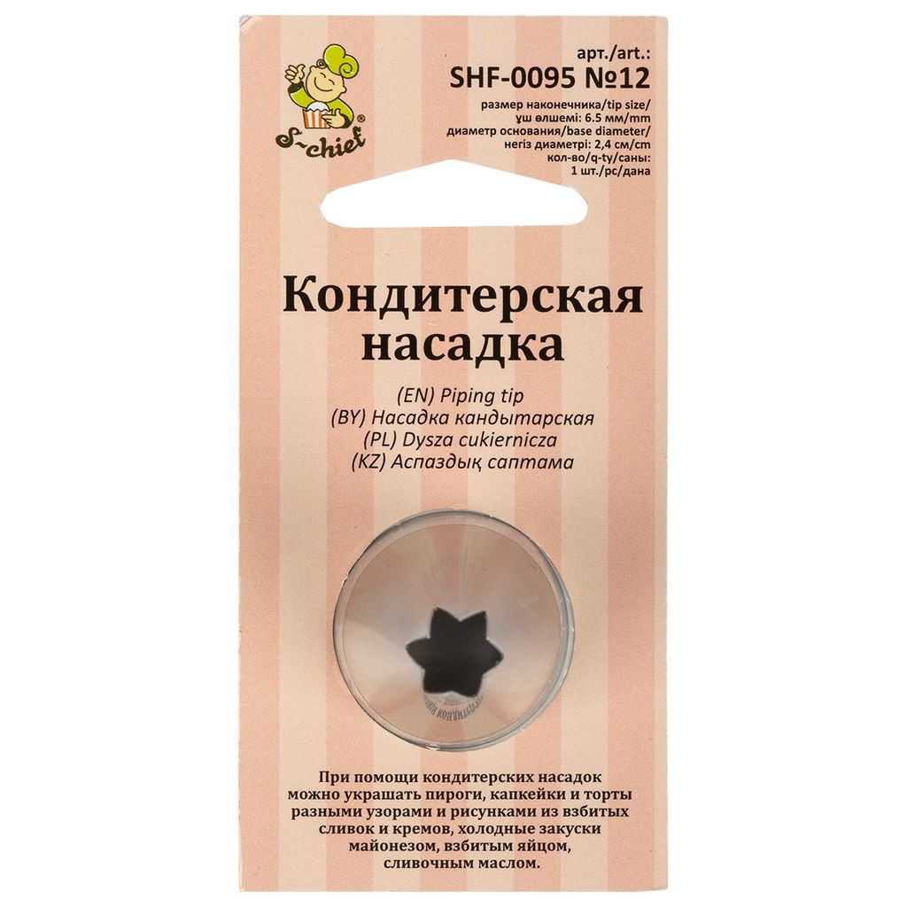 S-CHIEF SHF-0095 Кондитерская насадка d основания 24 мм нержавеющая сталь 1 шт № 12 открытая звезда
