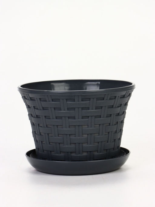 Кашпо для цветов «Ротанг», 1.1 л, d=14.5 см, h=10.5 см, пластиковое, с поддоном, серое