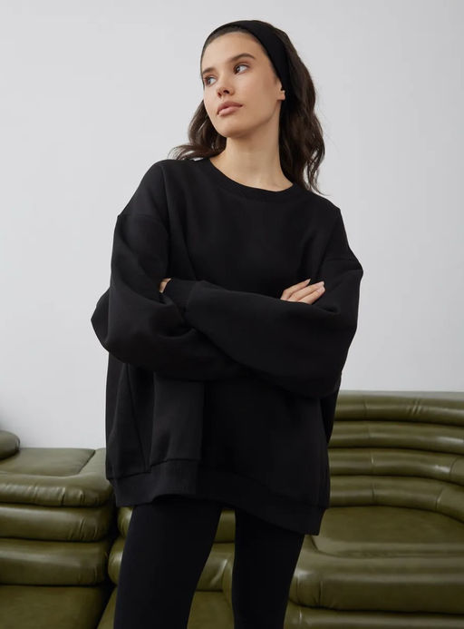 K12590 Свитшот OVER SIZE (плотный хлопок) ЧЕРНЫЙ