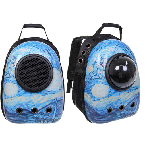 Рюкзак-переноска самое удобное решение для комфортной транспортировки домашнего питомца. Обтекаемая форма рюкзака-переноски напоминает космический шаттл с ярким дизайном "Люблю Ван Гога!" . Это необходимый аксессуар для путешествия, ведь она отвечает всем необходимым требованиям: переноска выдерживает вес до 7 кг, имеет прочный износостойкий материал и жесткое дно, есть отверстия для подачи корма и несколько отверстий для вентиляции, чтобы вашему питомцу было комфортно в течение всей поездки. Рюкзак выполнен из высокопрочного пластика. Он намного долговечнее легких сетчатых моделей, поэтому больше подходит для частых, долгих путешествий. Спинка ортопедическая. Удобная ручка и регулирующиеся по длине лямки рюкзака, позволят с комфортом для вас нести переноску с питомцем внутри. Благодаря иллюминатору питомец сможет наблюдать за окружающим миром, но в то же время находиться в безопасности. Размер переноски 27*33*43см.­