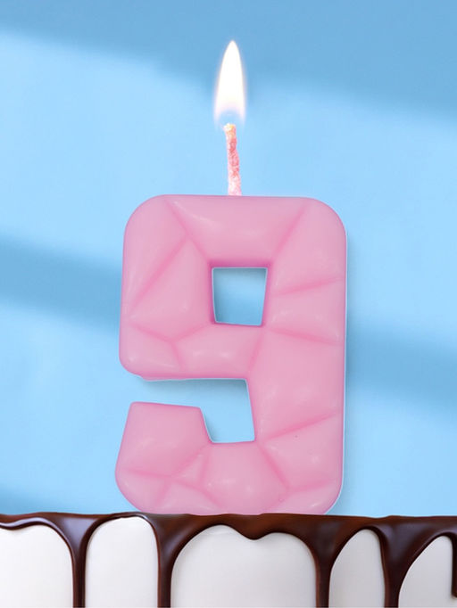 Цена за 3 шт. Свеча для торта «Цифра 9», светло-розовая