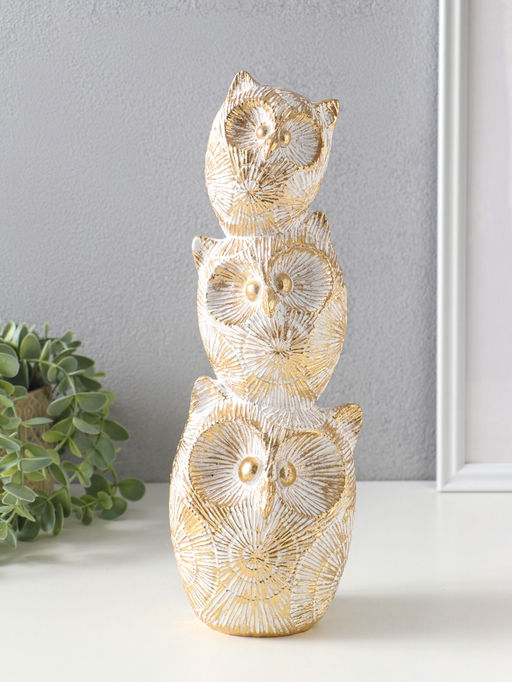 • Фигура полистоун «Три совы - пирамида. Золотые круги», 11.5×11.5×32 см