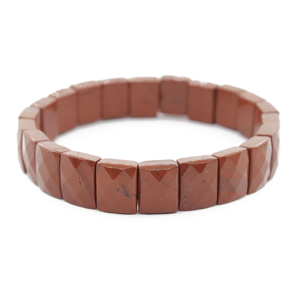 Браслет выполнен из натуральной ограненой красной яшмы. Ширина браслета 12мм. Длина браслета - 19см.