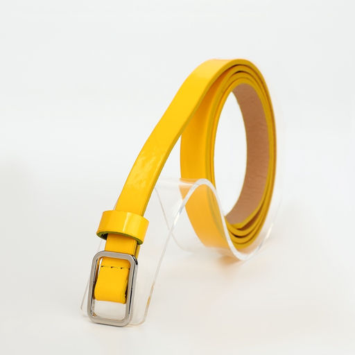 • Ремень женский тонкий, 110×1.3 см, прямоугольная пряжка металл, серебристая, жёлтый